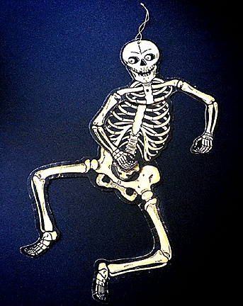 to make paper skeleton die-cuts to hang in windows. Later, others began