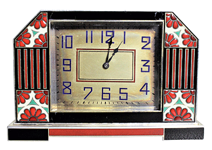 marble, onyx, brass, glass, and chrome in their Deco clocks. Many of