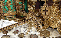 art, the delicate needlework of cloistered nuns, painted icons,