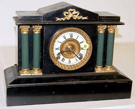 with an egg and dart design. The entire clock sat on a solid rectangular
