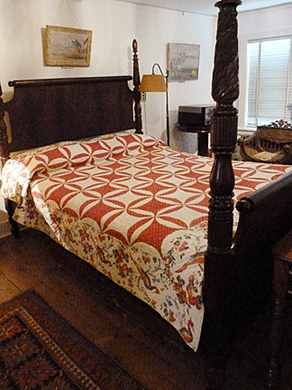 painted chintz dates from the 1840s.The back bedroom features a quilt