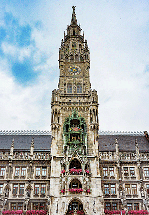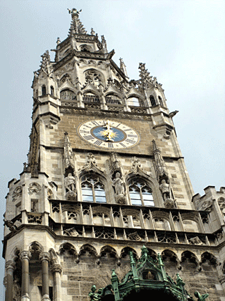 Rathaus, the New Town Hall—the Glockenspiel. This timepiece has been