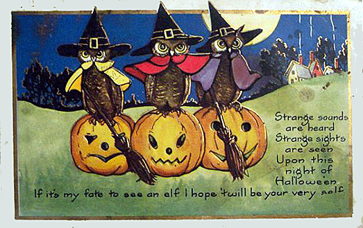 Anthopomorphic Halloween postcards, characterized by the weird depiction