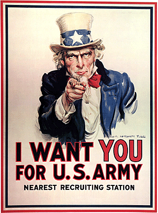 "recruitment" image of Uncle Sam, created by James Montgomery Flagg,