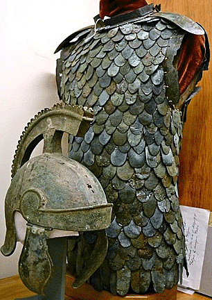 worn by regular legionaries as well. A shirt of scale armor, shaped in