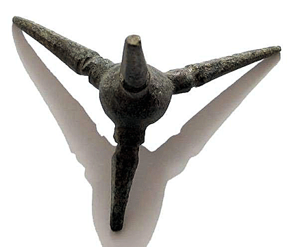 tribulus or caltrop, a weapon made up of four sharp nails or spines