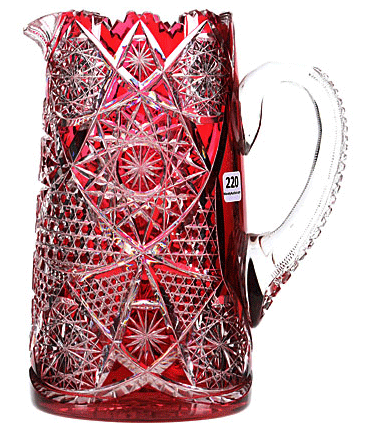 crafted was a superior quality ABCG red cut-to-clear water pitcher