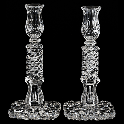 pair of ABCG candlesticks, 11 inches tall, featuring a spiral and