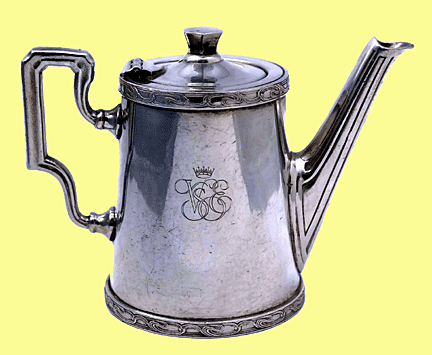 fluting and vase finials on the covers of coffeepots and teapots. It is