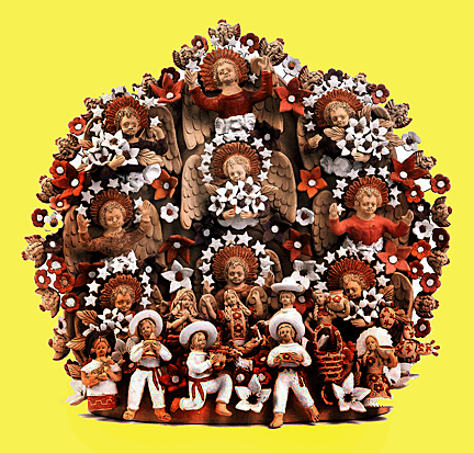figures of the Holy Family find shelter. An angel, Los Reyes Magos (the
