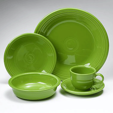 Fiesta was the first dinnerware that could be purchased by the piece allowing customers to have a different color for each setting, or all their dinner plates of one color, all their soup bowls another, and so on. This concept of mix-‘n-match in solid color designs caught the imagination of the public, and together with its crisp Art Deco style, caused Fiesta ware to become widely popular.