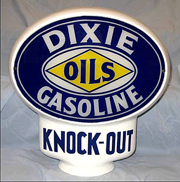 gasoline." Most were made of milk glass rather than clear glass.