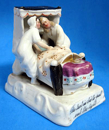 Grandma," two separate statuettes of a small boy and girl, each dressed