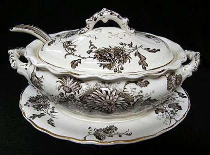 around the ladle handle. Low soup tureens are called chowder tureens at