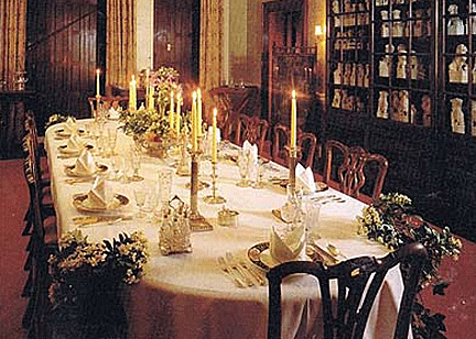 etiquette of the day dictate who sat where, decorum at the dinner table,