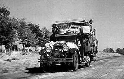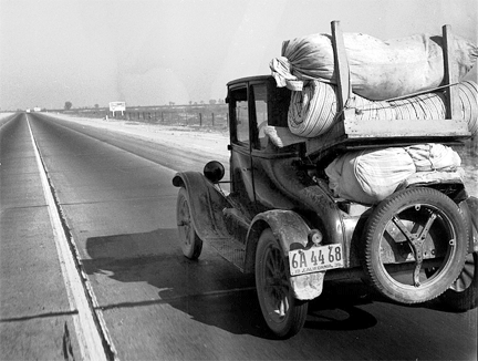 descriptions of the dirty and desperate faces of the “Okies” fleeing the