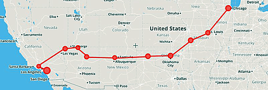 Chicago, Illinois, through Missouri, Kansas, Oklahoma, Texas, New