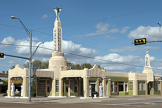 Notable structures along Route 66 include the Art Deco–styled U-Drop