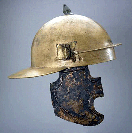 Roman helmets also featured a neck guard and a turned, cast soldered