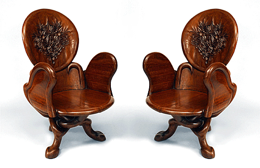 craftsmanship. It usually had no straight lines. Chair backs and table