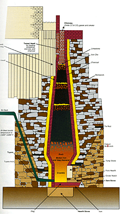 charcoal, iron ore, and limestone to the fiery mass at regular
