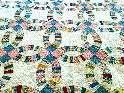 pastel fabrics. A feature of many Double Wedding Ring quilts was its