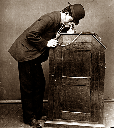 peephole film-viewing device and its bulky camera counterpart, the
