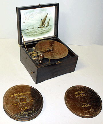 mass-produced the disc box from 1885 to around 1915, with sizes ranging