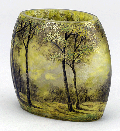 Some of the most gifted glass artisans worked for Daum, including Victor Marchand, Jacques Grüber and Eugéne Gall, who would remain with the Daum company for over 40 years. With the influx of such superb talent, Antonin established an in-house design school to train glass craftsmen and to research new techniques, such as the use of gilt between layers of glass, powdered glass to achieve textural effects and the inventive use of enamels to provide dimension and additional color.