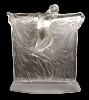 René Lalique learned the arts of jewelry making, designing and sculpting, all skills of which would influence his future glass masterpieces. But he longed for a greater artistic challenge, and by 1900, he expanded his horizons into the realm of glass. In just 10 short years, Lalique transformed into a master glassmaker, creating everything from vases and car hood ornaments, to chandeliers and perfume bottles. His motifs are said to have focused on “females, flora and fauna”, highlighting asymmetrical, undulating lines and sensuous curves encountered in the natural world.