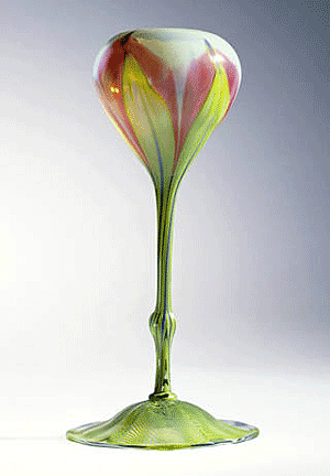 Well trained in painting and design, Tiffany traveled extensively throughout Europe and Northern Africa gaining inspiration from the bounteous decorative styles he encountered along the way. By 1878, Tiffany & Company had gained great acclaim at the International Exhibitions for its innovative silver, with Louis often accompanying his father and exhibiting his own paintings. Here the younger Tiffany encountered the works of European glass masters. He would then learn to master the Art Nouveau design that captured this aesthetic movement.