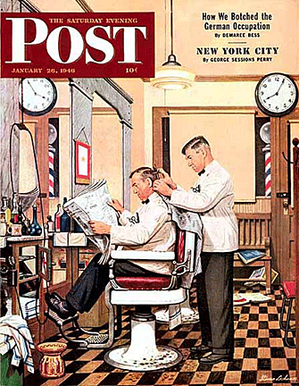 His "Sharp Harmony," depicting a barber and three patrons enjoying