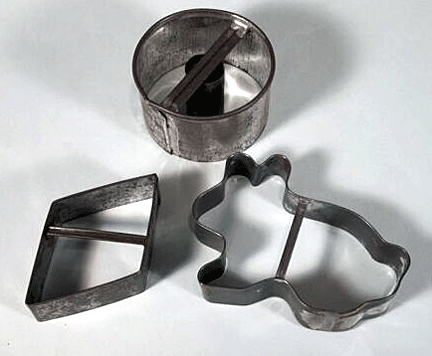 common from the 1930s. Metal cookie cutters with “bullet” handles are