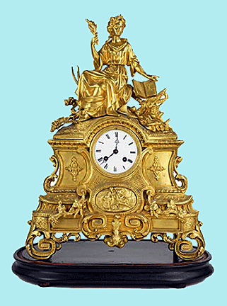 gold-handed clocks made by clockmakers such as Raingo Freres for French