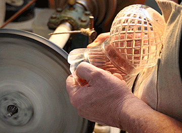 inner surface of the glass with his bluffing and polishing wheels. On