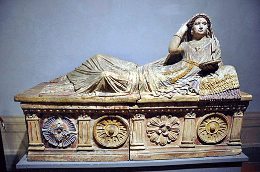 tomb effigies in terracotta, usually lying on top of a sarcophagus lid