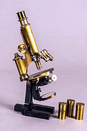 microscope comes complete with a wooden case, four objectives—a 'K'