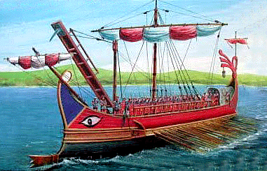 galleys. The Egyptians placed figures of holy birds on the prow while