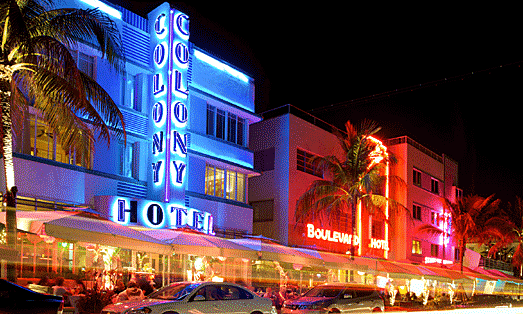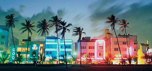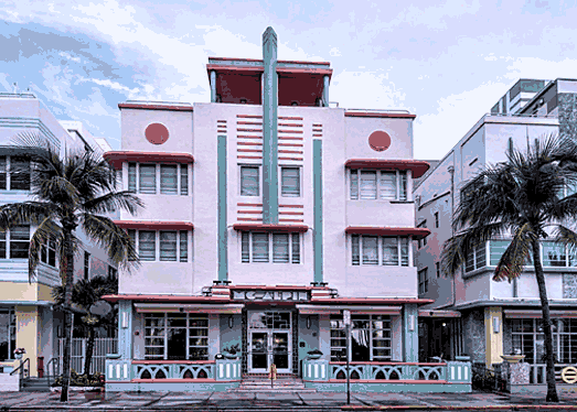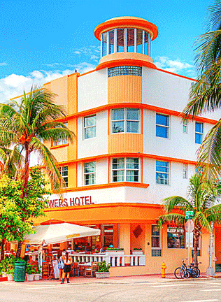 bright oranges, vibrant yellows, greens and more. South Beach’s Art Deco