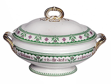 surrounded by cheaply made furniture, mass-produced ceramics, tawdry