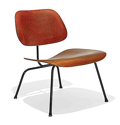 two-piece chair whose plywood sections were attached to a chromed frame.