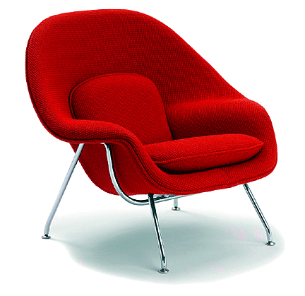 1946, the Womb chair and ottoman in 1948, the Womb settee in 1950, side
