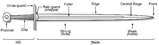 and grip, where the user’s hand grips the sword beneath the cross guard.