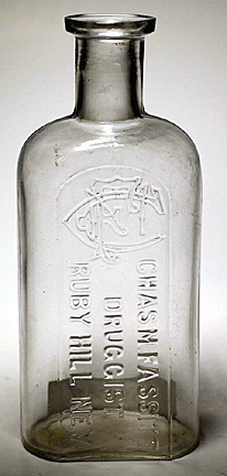 A bottle for Chas. M. Fassitt---“Druggist/Ruby Hill/Nev," in mint
