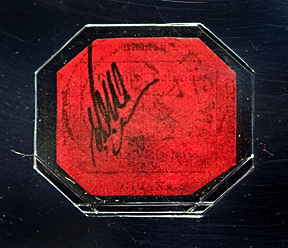 Guiana One-Cent Black on Magenta stamp, produced in 1856, sold in